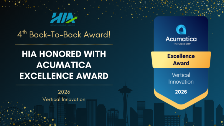 HIA, the Enterprise Resource Planning (ERP) platform built for hospitality, is yet again the recipient of Acumatica’s prestigious Vertical Innovation award. At the Acumatica Summit 2026, held in Seattle, Washington from January 25th-28th, over 3000 attendees gathered in the capital of global cloud computing to celebrate Acumatica’s innovative, AI-driven business technology.